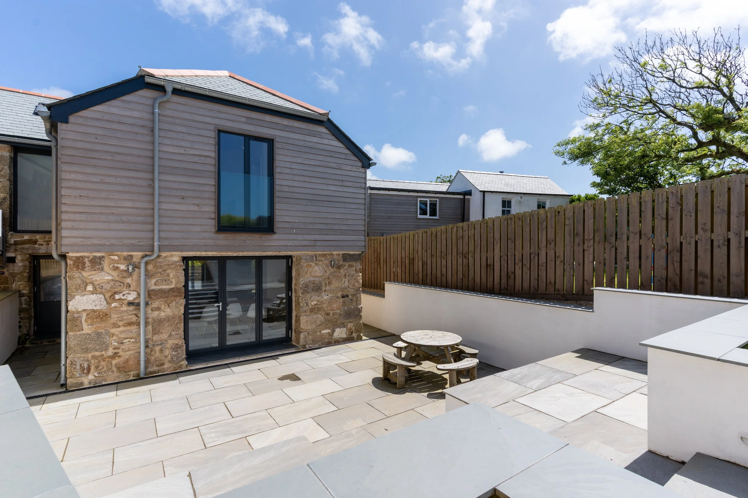 This large scale project involved the full renovation of an old granite farmhouse and the extensive, surprise filled conversion of its two derelict barns.